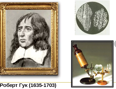 Первый, кто оценил значение увеличительного прибора и применил его для исследования срезов растительных и животных тканей, был английский физик и ботаник Роберт Гук. В 1665 году, изучая срез пробки, он обнаружил структуры, похожие по строению на пчелиные соты, и назвал их ячейками или клетками.