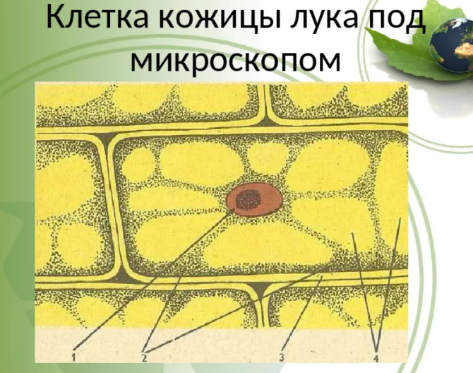 Познакомимся со строением растительной клетки под микроскопом, рассмотрев препарат кожицы чешуи лука.